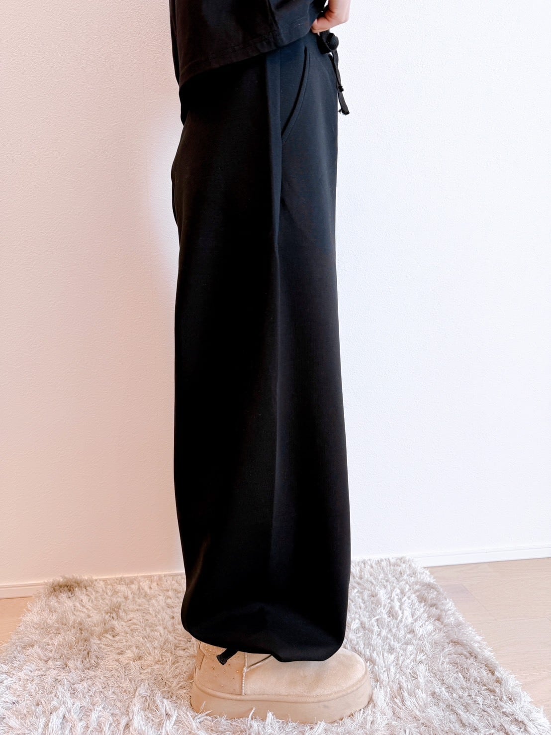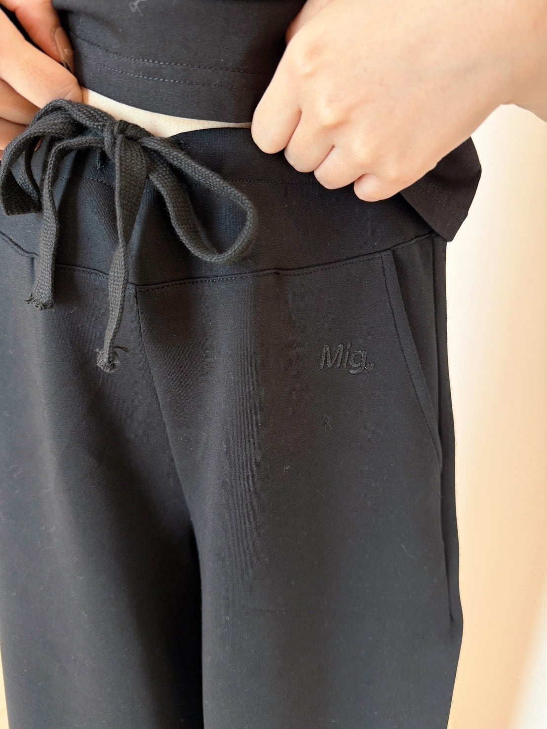 可愛い無地ウェアが作りたくて、型紙からオリジナルで作ったスウェットパンツです♡